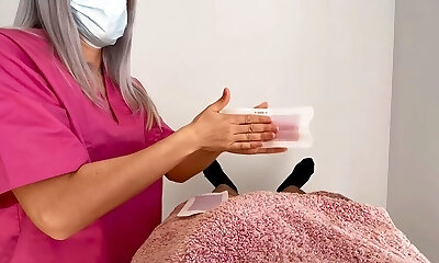 Cock waxing by adorable beginner girl wanks me off until I cum