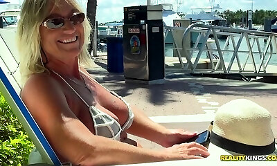 milf traviesa con un traje de baño se folla duro como una roca en un yate maravilloso
