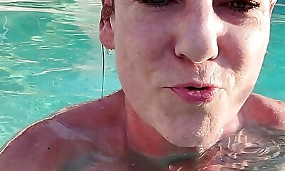 خیره کننده ورزش ها خشنود خودش را برای یک ارگاسم زیبا توسط استخر