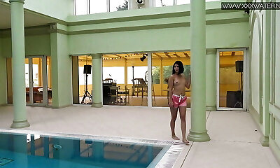 petite ado baisée dans la piscine, à l'intérieur et avale l'éjaculation