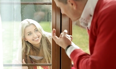 blondinette à l'air charnu en collants blancs nikki dream s'amuse avec son coochie outdoor