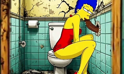 The Simpsons Porno Parody: Sexy Cheating Wife Marge Lets a Black Boy Fuck Her In The Public Toilet
