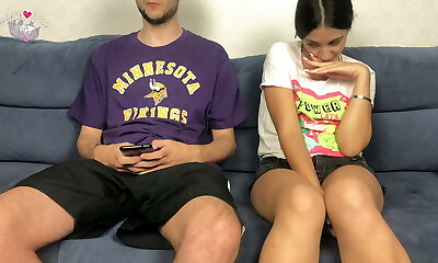 Step Step-sister Spotted Step Brothers Big Dick Through Shorts And Couldn't Resist! Mutual Handjob Orgasm