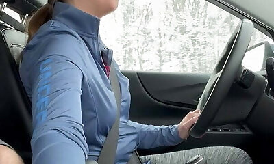 caldo brunetta dà lei passenger un handjob