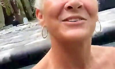 BIG Knocker SEXY POOL TEACHER GIVES MASSAGE FUCKS Gigantic DICK OUTDOORS