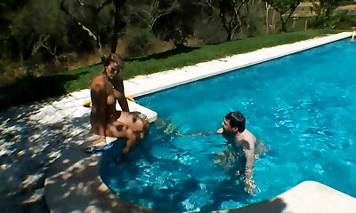 Wondrous Izzy gets her tight blond cooter fucked by the pool