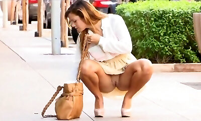 Грудастая Азиатская девушка в рабстве получает облапанная и dildoed