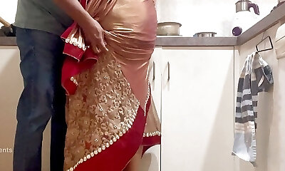 印度二人浪漫在厨房-纱丽砰-出-纱丽提出和战利品耳光