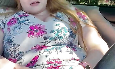 Sexy Redhead MILF Plays in Public Restaurant Car Rail