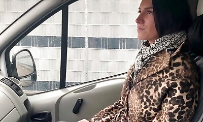 I picked up a man traveler, she asked her for a ride, but she didn't have nothing and she did a blow-job! fake