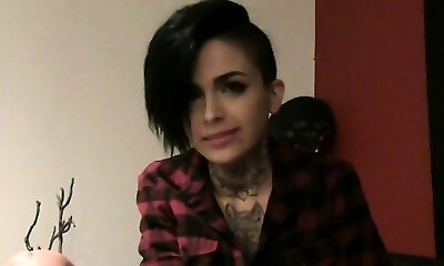 nasty emo cutie joue de sa chatte avec une friandise au pinceau