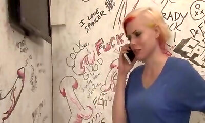 сучка в туалете заправочной станции устраивает оргию в дыре славы