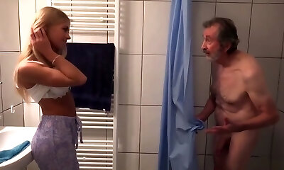 Lean Towheaded Teenie保姆抓住&功放;撞到射精的观点
